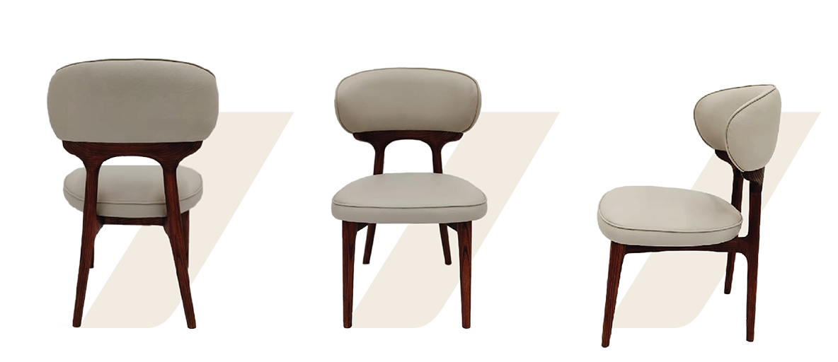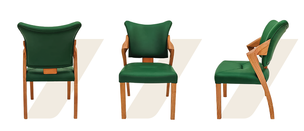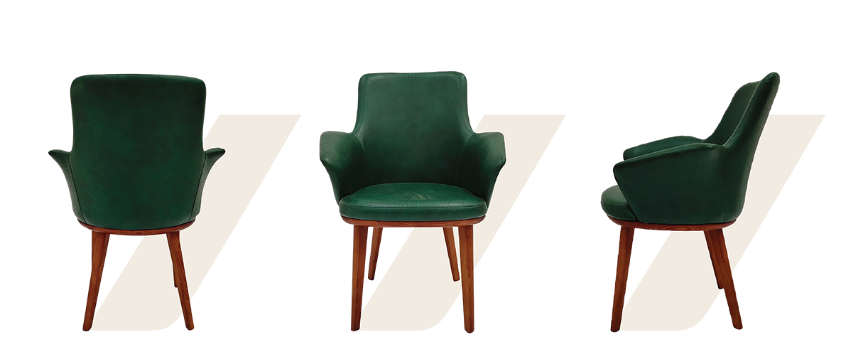 Designed to embrace, the Fantasy chair features elegantly curved armrests, a contoured back, and deep cushioning. Finished with tapered wooden legs, it balances luxury with a modern sensibility.